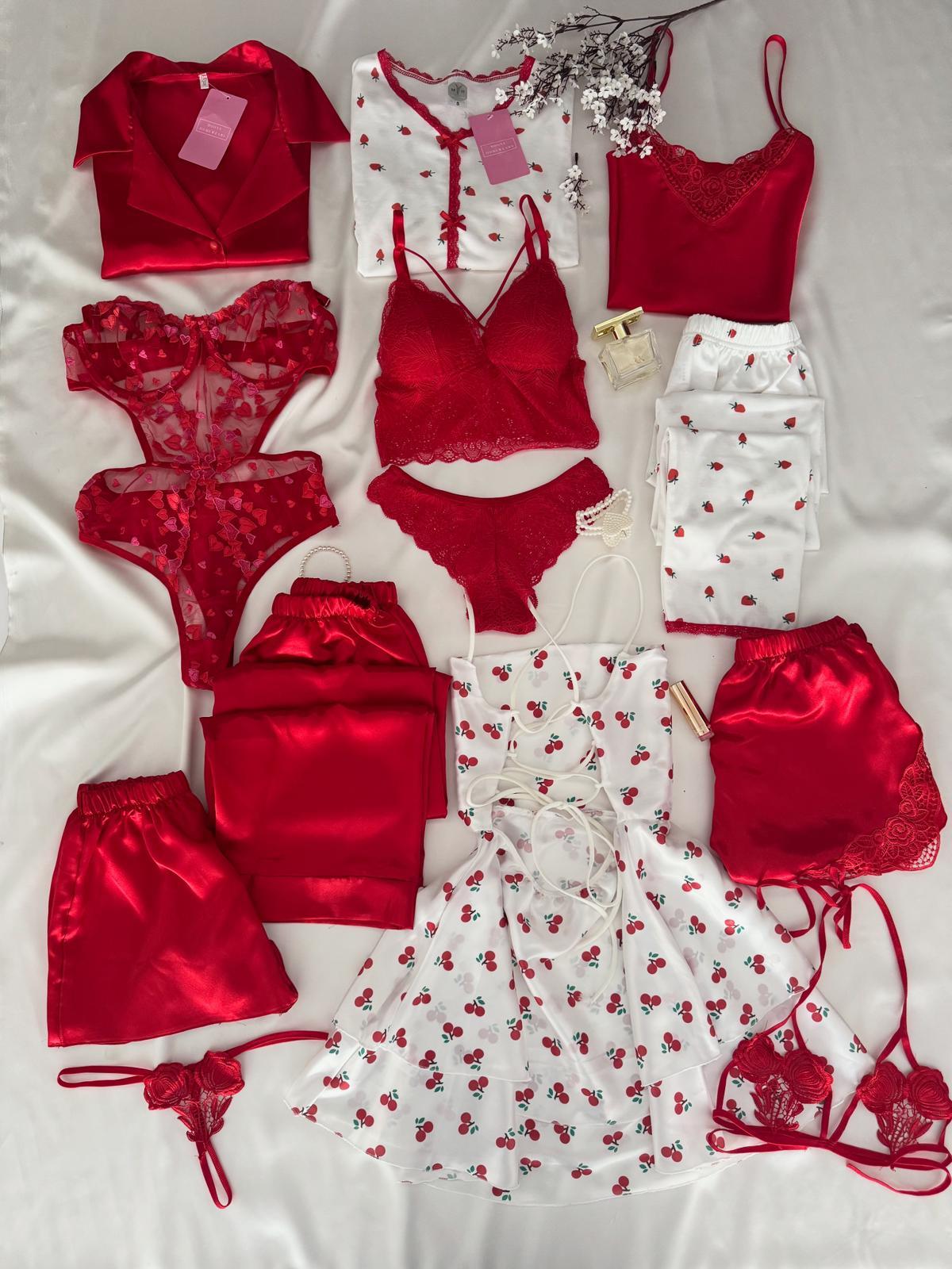 13 parça (saten gömlek üst, saten uzun alt, saten şort alt, brode dantel tulum, penye gömlek üst, penye uzun alt, erotik bralet, erotik tanga, saten askılı üst, saten şort alt,bralet, külot) -s m l xl -75,80,85,90